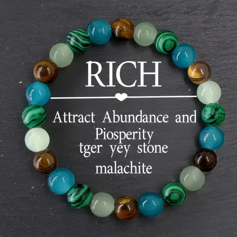 Attract wealth, abundance, and prosperity into your life with this powerful crystal bracelet. Crafted with Tiger Eye stone, Malachite, and other prosperity-enhancing gemstones, this beautiful bracelet combines earthy greens, calming blues, and warm browns. Tiger Eye is the ultimate prosperity stone, boosting confidence and manifestation abilities. Malachite is known for its protective properties and ability to attract good fortune. The combination of these stones creates a powerful magnet for abundance. Wear this bracelet daily to align your energy with financial success and open yourself to new opportunities for growth and prosperity.